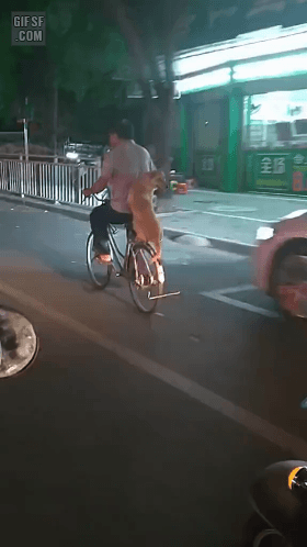 자전거 뒷자리 탄 댕댕 |