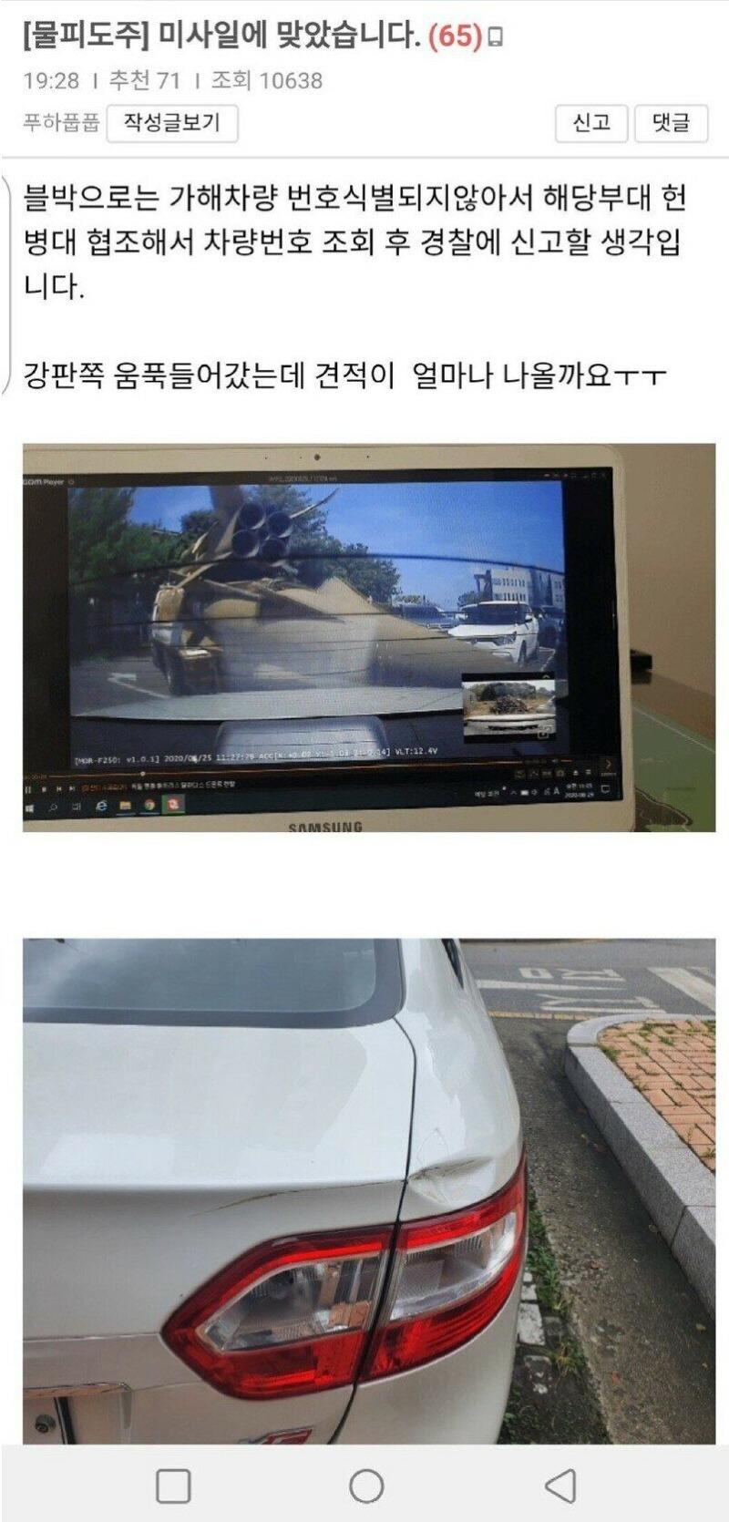 미사일에 맞은 차량 |